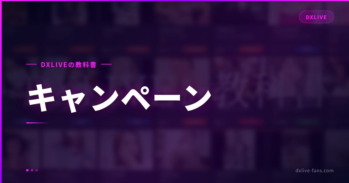 DXLIVEで開催中のキャンペーン・イベントを網羅。ポイントセール(10〜30%ボーナス)、ハッピーアワー、新人割引、写真コンテストなど定期更新でお届けします。
