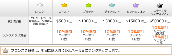- 特定のサイトで会員ランクによる特典あり