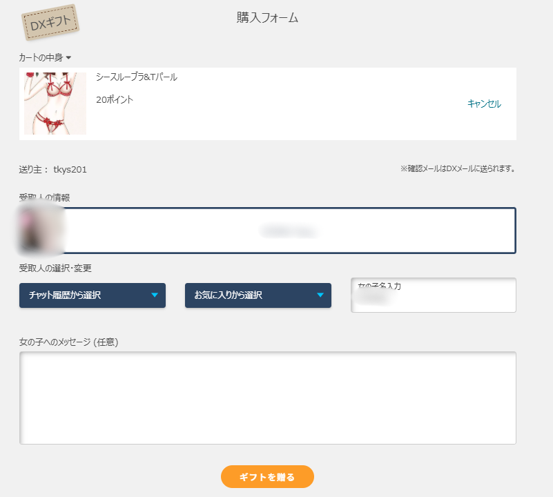 DXギフトは、DXLIVEがあなたと女の子の間に入って、すべての配送手続きを代行してくれます。