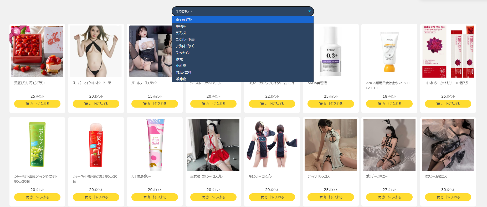DXギフトのラインナップには、可愛らしいコスプレやセクシーな下着、さらには大人のおもちゃまで含まれています。