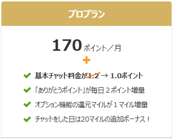 - プロプラン(月額300ドル)はチャット料金割引+マイル優遇でヘビーユーザー必須